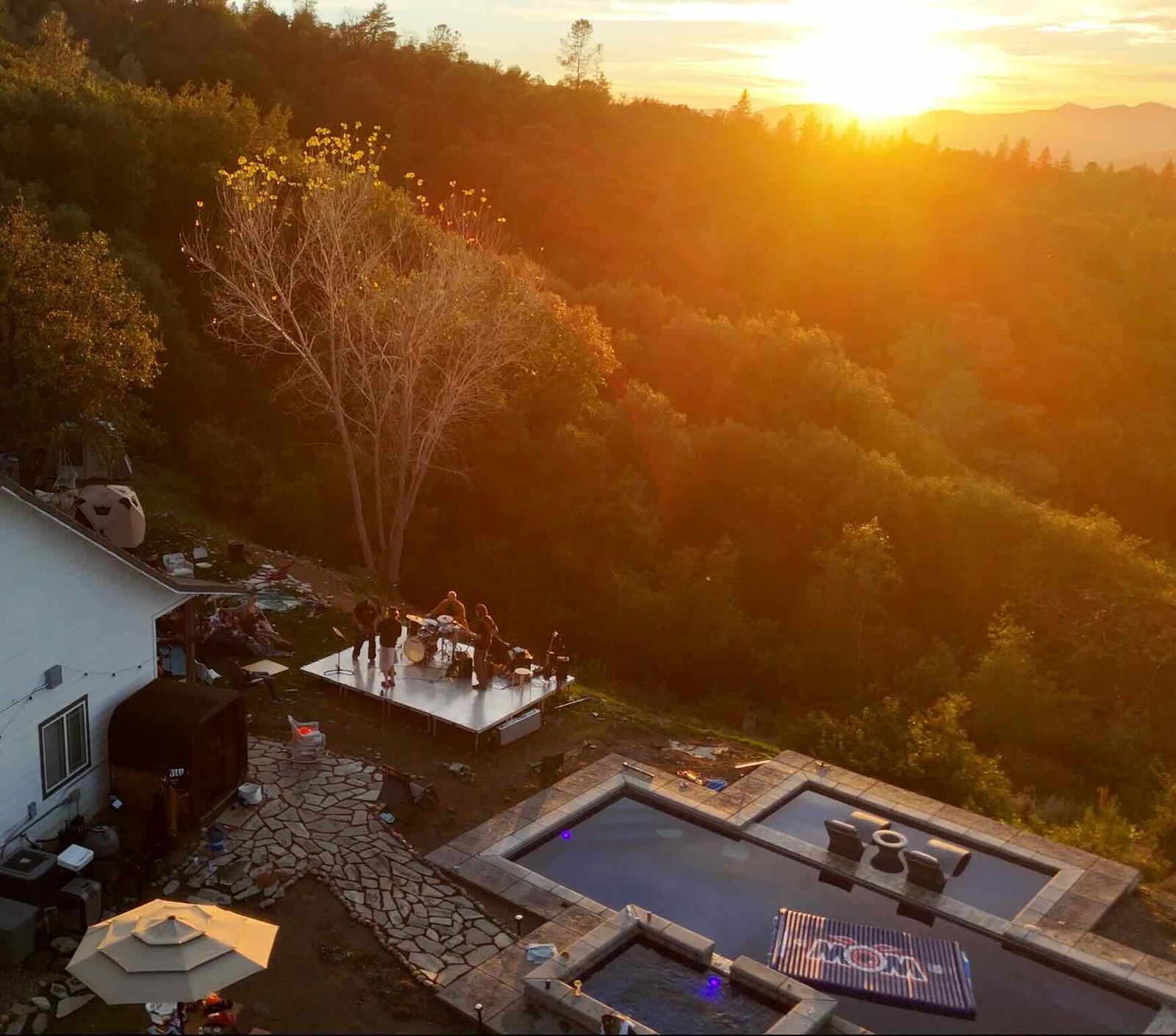 At a 10-acre musicians' retreat at 2,000 ft in the Sierra Nevada foothills.